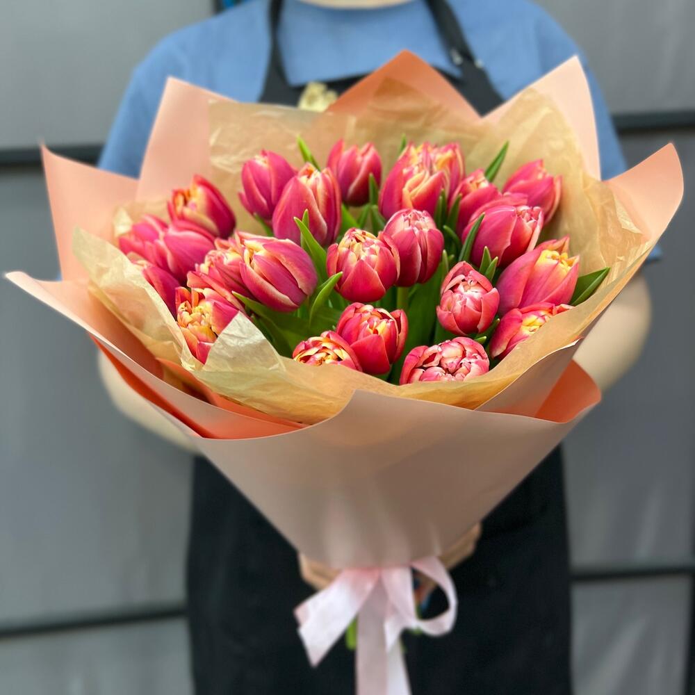 Моно букет пионовидных тюльпанов от «FMART x Zvezda».Не забудьте поздравить близких с 8 марта! Подойдёт для любого повода Как ухаживать за цветами? Всё просто:1. Обновите срез букета (секатором или ножом срежьте стебли на 1 см под углом 45 градусов)2. Поставьте цветы в вазу с холодной водой ( предварительно добавив в воду средство для продления жизни срезанных цветов) 3. Меняйте воду в вазе каждый день, а срез обновляйте раз в 1-2 дня.✅ Добавляйте товар и магазин в избранное, чтобы было легче нас найти